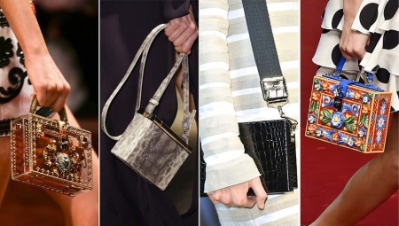 Fyrkantiga och runda kopplingar, moderna idag, väljs av en kvinna som inte är rädd för experiment. Feminina handväskor-lådor skiljer sig åt i strikt geometrisk form. Dessa kopplingar är idealiska för att gå till utställningen eller till museet. Men de bör bäras uteslutande med iögonfallande saker: till exempel en vanlig svart klänning.
