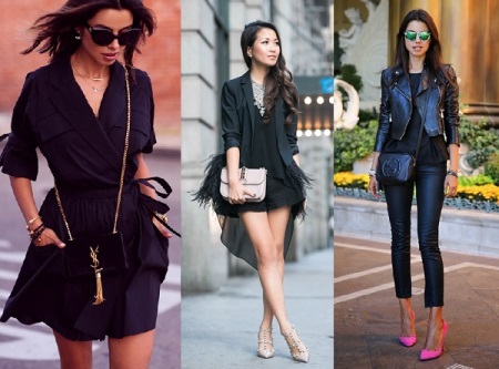Blått och svart anses vara universellt. Det är lämpligt för alla typer av stil och ingår i listan över saker som varje flicka ska ha. En sådan koppling är lämplig för formella möten och för en kvällsdräkt.