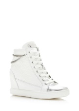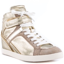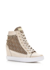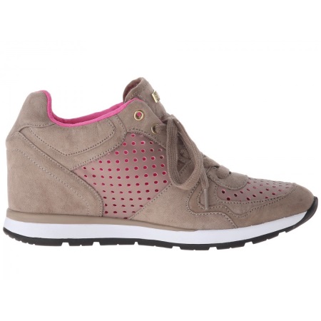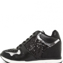 Wedge sneakers eller sneakers är en annan ultra-populär modell som inte har gått ur mode på flera säsonger i rad. Sortimentets sortiment inkluderar läder- och mocka-modeller, men oftare föredrar designers det andra materialet. Du kan hämta sneakers med olika dekor - fransar, nitar och strass, eller så kan du stanna kvar på behållna lakoniska modeller.