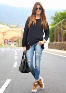 Sådana sneakers kommer att utgöra ett anständigt par jeans och byxor, kommer att se bra ut med en klänning eller kjol.