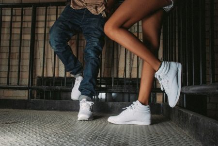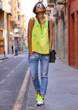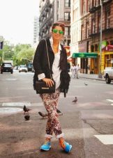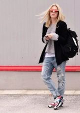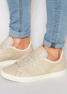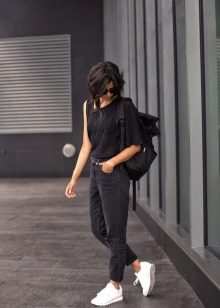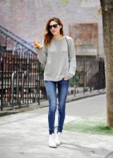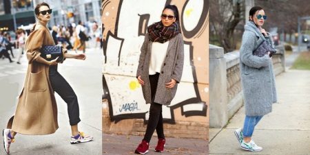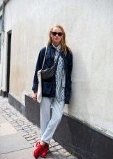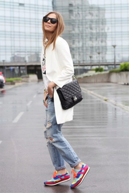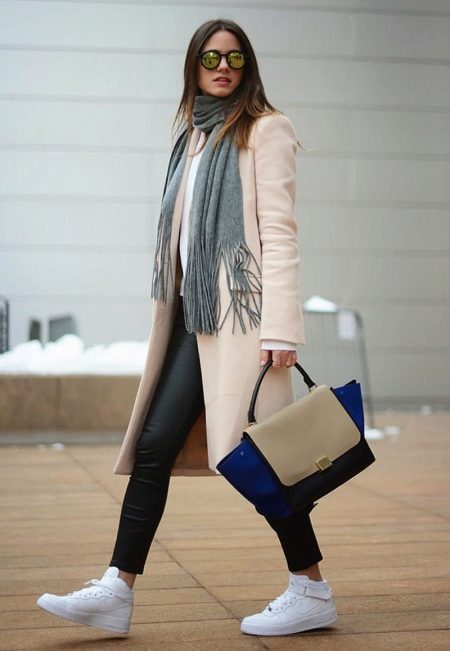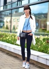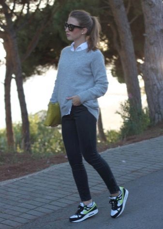 Naturen och stämningen på hela outfit beror på sneakersnas färg, eftersom ljusa skor i vissa fall är ett avgörande element som kompletterar bilden, och i andra fall fryser lugna nyanser och kompletterar den grå vardagliga outfit.