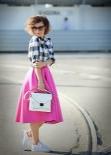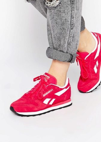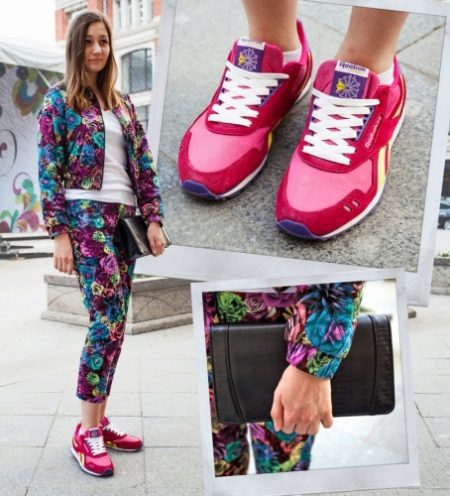 Rosa färg Det ser vackrast ut i kombination med en sport, mestadels lätt, sneakers. Ljusa skor är utmärkta för sport, med visuella effekter stärker och energier.