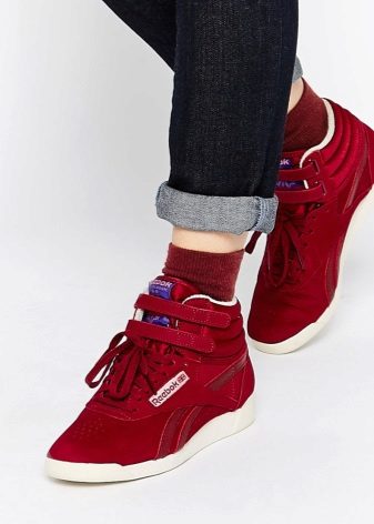 Otroligt populära vinröd nyanser, marsala färg, vin och körsbär ton. Djupet i dessa färger ser frestande ut, och sneakersna i denna skugga kommer att bli ett saftigt komplement till mörkfärgade kläder.