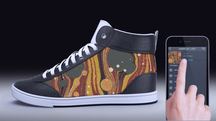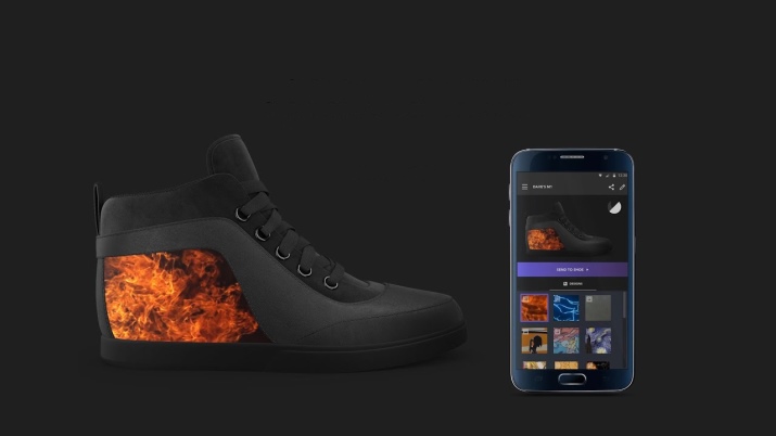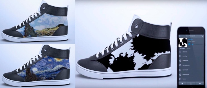 Trendiga modeller av Shiftwear-sneakers har flexibla färgskärmar som gör att skor är lätta att byta.. Du kan ställa in både färg och svartvitt, såväl som animerade eller statiska bilder via mobilapplikationer.