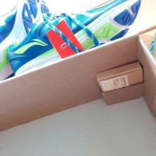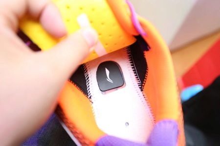 Inuti den högra skon under innersulan finns ett litet fack, där det chip som medföljer sneakers är enkelt att sätta i.