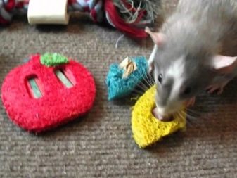 - Leksaker för promenader. I naturen tillbringar råttor och möss större delen av sin vakna tid på att leta efter mat. För ofta fyller vi bara skålen med mat så att ditt husdjur snart kan bli lat och få extra vikt.