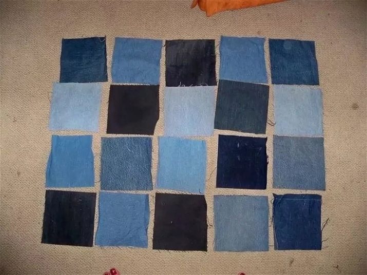 Skär långa remsor från gamla jeans och vrid i långa remsor som kommer att bli sidhuvudelementen för stegen för att göra en denimrepstege. Gör sedan tvärskenorna, de tunnare remsorna är också vridna och fästade vid huvudremsorna.
