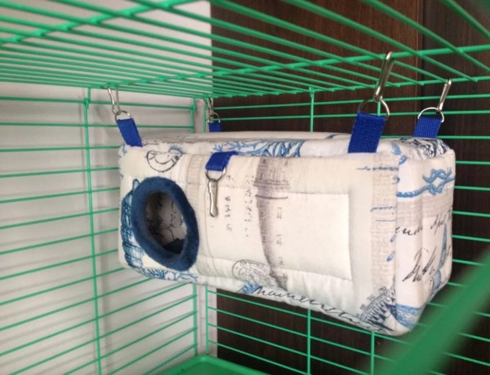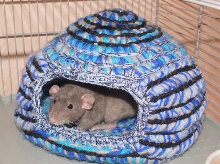 Du kan hänga korgarna och fylla dem med trasa eller lägga en liten matta inuti för att göra skyddet mjukare och bekvämare. Om dina råttor gillar att tugga och tugga allt, se till att materialet som korgen är gjord av är säkert för ditt husdags hälsa. Sådana ursprungliga korgar kan hängas vertikalt eller i sidled med ett rep.