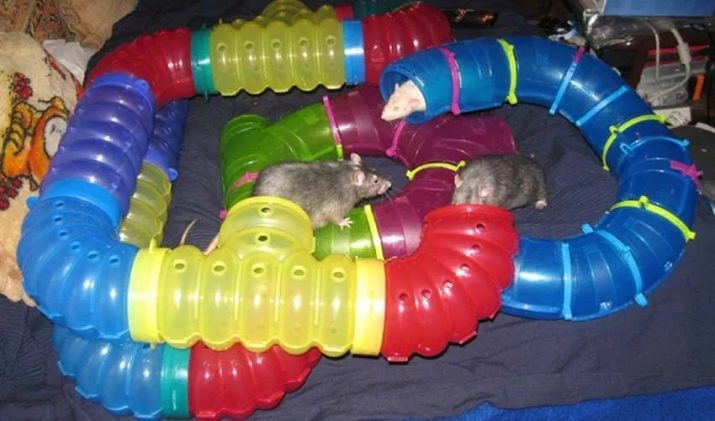 - Tunnlarna. Råttor och möss, till sin natur, gör och använder hålor eller tunnlar. Du kan tillhandahålla färdiga tunnlar eller låta dem göra dem själv. Du kan köpa eller skapa tunnlar av plast och placera dem i en bur, hänga på rostfria galgar. Du kan skapa din egen modellform och skapa ett helt nätverk av labyrinter. Plast är lätt att rengöra. Var noga med att välja ett rör med en ganska stor diameter så att gnagaren inte kan fastna i det.