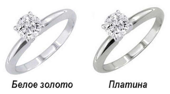 Rhodium ser snygg ut och bleknar inte, ändrar inte färg över tiden. Det är mer repbeständigt än mjukt guld. Den enda nackdelen med en sådan beläggning är dess nötning, vilket leder till gulning av produkten. Sådan sprutning rekommenderas att uppdateras med några juveler med några juvelerare. Platinum kräver inte ytterligare behandlingoch så har den en silvervit färg.