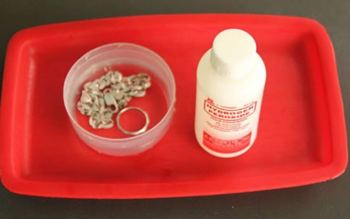 I fallet med en falsk bildas en fällning i lösningen, vilket får den att molna. Om produkten verkligen är gjord av ädel metall kommer lösningen inte att förlora sin transparens utan börjar syntetisera klor. En skarp lukt vittnar om dess utseende.
