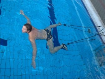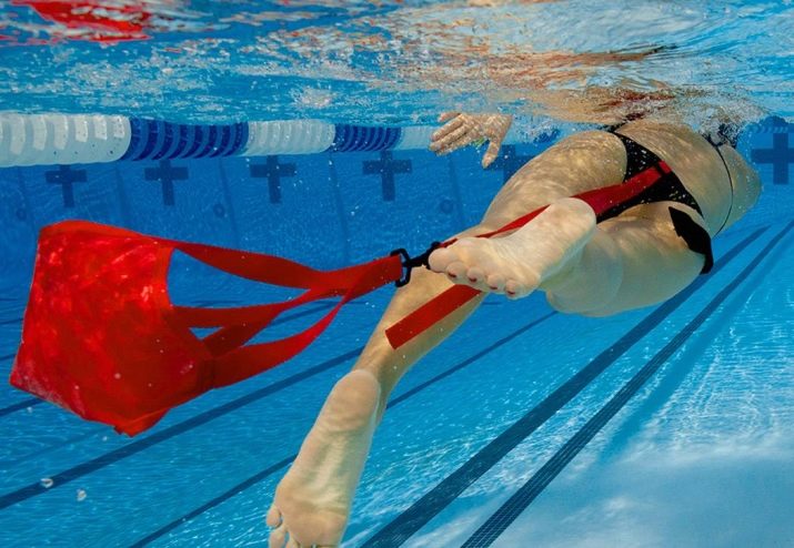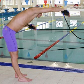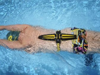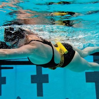 - เข็มขัด มันเพิ่มน้ำหนักของนักว่ายน้ำและเพิ่มความต้านทานของมวลน้ำเนื่องจากสายพานช้าลงนักกีฬา ในการว่ายน้ำได้เร็วขึ้นคุณต้องพยายามอย่างมาก สายพานเบรกประกอบด้วยเข็มขัดที่บรรจุของเหลวพลาสติกที่แขวนอยู่ สามารถปรับปริมาณและน้ำหนักได้อย่างอิสระ อุปกรณ์นี้ออกแบบมาเพื่อปรับปรุงเทคนิคการว่ายน้ำและเพิ่มความทนทาน