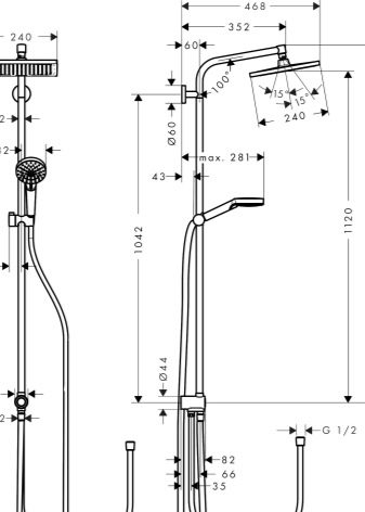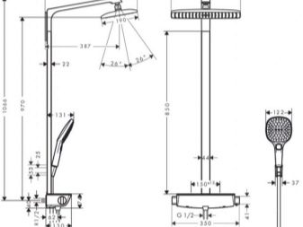 อัตราการไหลนาทีของน้ำสูงสุดที่อนุญาตคือ 20 ลิตร มุมของน้ำประปาจากฝักบัวเหนือศีรษะสามารถปรับได้ ขนาดของดิสก์ฝักบัว - 0.36x0.19 m