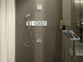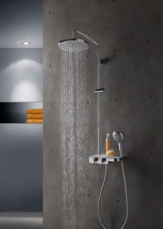 ค่อนข้างบ่อยใช้ ชั้นวางฝักบัวอาบน้ำ พวกเขาจะถูกวางไว้บนผนังในมุมหรือในศูนย์ขึ้นอยู่กับความต้องการที่เฉพาะเจาะจง ชั้นวางฝักบัวอาบน้ำยังติดตั้งบนพื้นผนังผนังภายในหรือบนเพดาน การรดน้ำสามารถหยุดนิ่งหรือไม่ มุมห้องอาบน้ำฝักบัว ส่วนใหญ่ใช้สำหรับห้องน้ำขนาดเล็ก