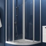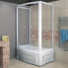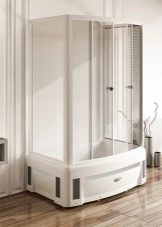 - ความเป็นปึกแผ่น ประการแรกเมื่อเลือก "มุม" หรือห้องโดยสารลูกค้าจะได้รับคำแนะนำจากขนาดเพราะถ้าห้องน้ำมีขนาดเล็กคุณต้องซื้ออุปกรณ์ขนาดกะทัดรัดสำหรับมัน ในมุมที่คุณสามารถหารุ่นที่มีขนาด 70x70 หรือ 80x80 ซม. ซึ่งจะมีรูปร่างของวงกลมหนึ่งในสี่