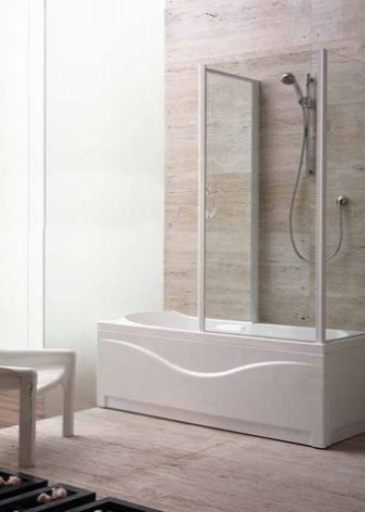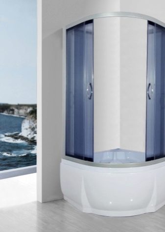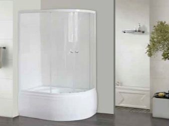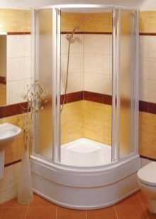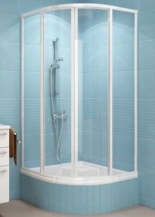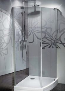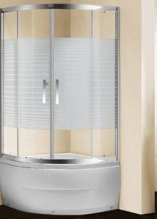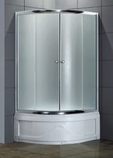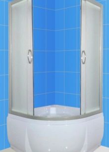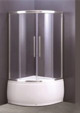 บางรุ่นมีมุม ประตูฝ้า. เหมาะสำหรับห้องที่มีสีบางสีเป็นที่เคารพ อุปกรณ์ที่มีผนังสองด้านจะวางไว้ใกล้กับผนังที่ปูด้วยกระเบื้อง ดังนั้นการออกแบบจะไม่สูญเสียความสวยงาม ประตูและผนังแบบโปร่งใสสามารถขยายพื้นที่ได้อย่างชัดเจน ทางออกที่ดีคือการเลือกพาเลทที่มีสีเดียวกับกระเบื้องในห้องน้ำเพื่อให้มุมห้องดูกลมกลืนกันภายในห้อง