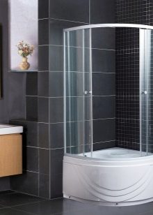 - เลื่อน. ประตูที่นิยมมากที่สุดสำหรับตู้อาบน้ำ ข้อได้เปรียบหลักของประเภทนี้คือความกะทัดรัด พื้นฐานของการออกแบบคือลูกกลิ้งที่ติดตั้งอยู่ด้านบนและด้านล่างของเฟรม กลไกสามารถนำมาเปรียบเทียบกับตู้เสื้อผ้า บานเลื่อนเปิดออกไปด้านข้าง ดังนั้นประตูอย่างที่มันเคยเป็นเข้าไปในเลเยอร์เพิ่มเติมบนเฟรม ในกรณีนี้ผู้ซื้อไม่ต้องกังวลเกี่ยวกับพื้นที่ที่จะเข้ามุมเมื่อเปิดประตู ข้อเสียคือการติดตั้งยาก