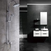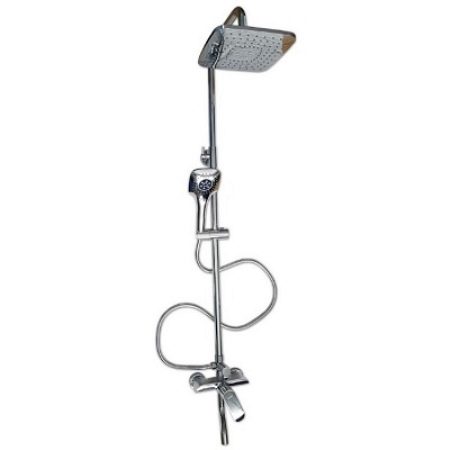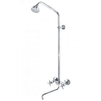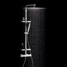 ชั้นวางฝักบัวอาบน้ำเป็นระบบฝักบัวอาบน้ำที่มีเครื่องผสม ด้านหลังยังอยู่ในรูปแบบของพาเนล (ซึ่งในทางกลับกันจะมีชุดตัวเลือกขนาดใหญ่กว่า แต่ต้องการพื้นที่มากขึ้นสำหรับการจัดวาง) คอลัมน์ฝักบัวคือการออกแบบที่เรียบง่ายขึ้นโดยมีรูปแบบของบาร์ในส่วนบนของหัวฝักบัวคงที่ในส่วนล่างมีมิกเซอร์ บ่อยครั้งที่มิกเซอร์นั้นติดตั้งกระป๋องรดน้ำอีกอันบนท่ออ่อน