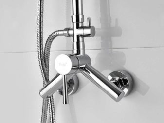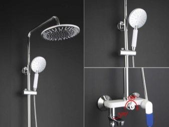 - ชั้นวางที่มีกระป๋องรดน้ำได้ 2 แบบ มุมมองนี้ได้รับการอธิบายแล้ว - หนึ่งกระป๋องรดน้ำสามารถแก้ไขได้ที่ด้านบนของบาร์มันไม่เคลื่อนไหว ที่สองติดตั้งบนท่ออ่อนเพื่อให้น้ำสามารถส่งไปยังสถานที่ที่เข้าถึงได้ยาก ฝักบัวเหนือศีรษะนั้นมักจะมีฟังก์ชั่นมากมายความสามารถในการควบคุมแรงดัน