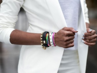 คุณสามารถเลือกสร้อยข้อมือสีใด ๆ ที่นำเสนอ อุปกรณ์จะสอดคล้องกับแจ๊กเก็ตชุดราตรีและรองเท้าของคุณอย่างสมบูรณ์แบบ มันเน้นความเป็นผู้หญิงอย่างสมบูรณ์แบบและสง่างามตามธรรมชาติ