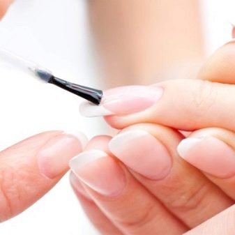 - ในระยะต่อไปเล็บควรถูกปกคลุมด้วยฐานนอกจากนี้ยังเป็นสิ่งสำคัญมากที่จะปิดผนึกพวกเขานั่นคือเพื่อครอบคลุมปลายตัวเอง การทำให้แห้งฐานจะใช้เวลาประมาณ 120 วินาทีในหลอด UV และเพียงหนึ่งนาทีใน LED