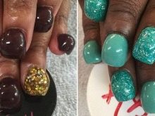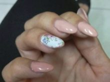 - ด้วยประกายไฟ เป็นไปได้ที่จะได้รับการทำเล็บที่งดงามและเปล่งปลั่งหากคุณหันไปทำเล็บเจล การรวมเหล่านี้อาจมีขนาดแตกต่างกัน รูปร่างของพวกเขาอาจแตกต่างกันไป