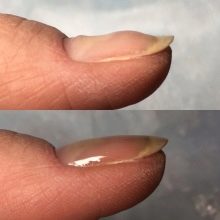 อย่างไรก็ตามเมื่อเสร็จสิ้นขั้นตอนนี้แล้วจะต้องลบผลิตภัณฑ์เครื่องสำอางที่ใช้แล้ว (น้ำมันหรือครีม) จากแผ่นเล็บ ถัดไปเล็บแห้งประมาณ 10-15 นาที