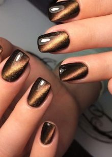 - "ตาของแมว" วานิชนี้เป็นที่นิยมอย่างเมามันวันนี้ มันมีอนุภาคโลหะที่เล็กที่สุดที่สร้างลวดลายและลวดลายที่สวยงามเมื่อคุณโฮเวอร์แม่เหล็กพิเศษ ผลลัพธ์ที่ได้คือการออกแบบเล็บที่หรูหราและหรูหราอย่างแท้จริงที่เน้นความแตกต่างของเจ้าของ