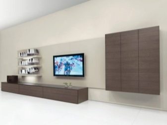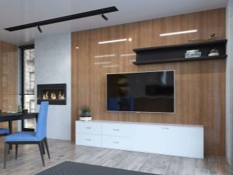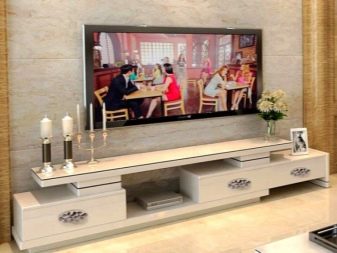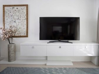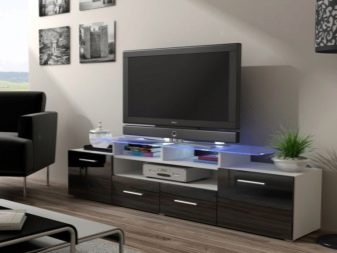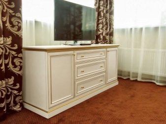 ลิ้นชักสำหรับห้องนั่งเล่นมีหลายขนาด โมเดลสูง (ใต้ทีวี - 55-65 ซม.) นั้นไม่ค่อยยาวไม่งั้นพวกมันดูหนักเกินไปเหมือนตู้เสื้อผ้า ความสูงของเฟอร์นิเจอร์ควรเป็นสัดส่วน