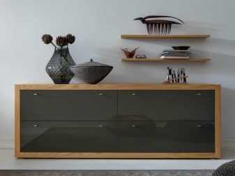 - เสริมด้วยลิ้นชัก หนึ่งในตู้ที่มีขนาดใหญ่และใหญ่ที่สุดสำหรับโถงโถง เหมาะสำหรับพื้นที่ขนาดใหญ่ที่ไม่เกินพิกัดเท่านั้น