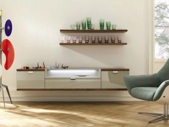 - การดัดแปลงที่ถูกระงับ ต้นฉบับ nightstands ทันสมัยอินเทรนด์หลากหลายสำหรับห้องนั่งเล่น ด้วยรายละเอียดดังกล่าวทำให้การตกแต่งภายในดูจางลงและผิดปกติมากขึ้น ผลิตภัณฑ์ดังกล่าวไม่มีขาในรูปแบบของขา - พวกเขาจะแนบกับผนังในขณะที่เหลือไม่กว้าง สะดวกในการทำความสะอาดพื้นใต้พื้น