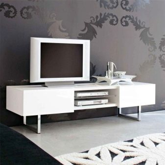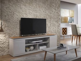 - มุม ตัวเลือกยอดนิยมบางตัว เหมาะสำหรับห้องขนาดเล็ก พวกเขาจะใช้ทั้งใต้ทีวีและสำหรับเก็บอาหาร พวกเขาวางตู้เหล่านี้ไว้ในมุมฟรีของห้องดังนั้นมีที่ว่างเพียงพอห้องดูเหมือนจะดูไม่เกะกะและรก