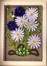 - เทป พวกเขาจะต้องมีหลายเฉดสี เมื่อสร้างภาพมักใช้สีเขียว - กลีบทำจากพวกเขาและสีอื่น ๆ ถูกนำมาใช้เพื่อบิดดอกไม้ - เหล่านี้อาจเป็นเฉดสีตัดกันสดใส (สีแดง, สีฟ้า, สีม่วง) หรือสีที่ละเอียดอ่อนมากขึ้น (สีชมพู, สีขาวหรือม่วง) แต่สำหรับเรื่องพื้นผิวคุณสามารถเลือกได้ ริบบิ้นซาตินนั้นถูกใช้โดยช่างฝีมือหญิงส่วนใหญ่ ความนิยมนี้ได้รับการอธิบายอย่างง่าย ๆ - เทปใช้งานง่ายตัดง่ายละลายง่าย นอกจากนี้วัสดุนี้ไม่ได้มีแนวโน้มที่จะไหลมันไม่ได้รับการเปลี่ยนรูปและในเวลาเดียวกันรักษารูปร่างที่ต้องการเป็นเวลานาน ผ้าซาตินริบบิ้นเครปนั้นทำงานได้ยากขึ้น แม้จะมีความจริงที่ว่าวัสดุนี้เช่นแผนที่ไม่ได้ผิดรูป แต่ผ้าเครปซาตินเป็นผ้าใบที่ค่อนข้างบอบบาง - เมื่อทำการร้องเพลงมีความเสี่ยงที่จะเกิดการไหม้เพียงแค่ริบบิ้น นอกจากนี้หากคุณใช้แสงเงาเพื่อทำให้ภาพของคุณโปรดทราบว่าเมื่อเวลาผ่านไปอาจมีร่องรอยมืดปรากฏขึ้น เทป Kapron นั้นสะดวก - นุ่มยืดหยุ่นได้และในเวลาเดียวกันก็มีรอยย่น ริบบิ้น Organza ไม่สามารถเรียกได้ว่าเรียบง่าย แต่อย่างใดเนื่องจากเนื้อผ้ามีความหลวมและแข็งโดยปกติแล้วช่างฝีมือดีที่มีประสบการณ์ในงานเย็บปักถักร้อยกับวัสดุนี้ดังนั้นให้คิดให้ดีก่อนที่จะได้รับเทป แม้ว่าดอกไม้ organza จะออกมาสวยงามอย่างแน่นอน