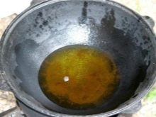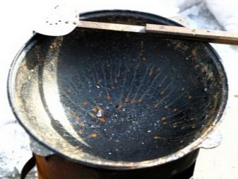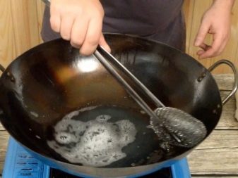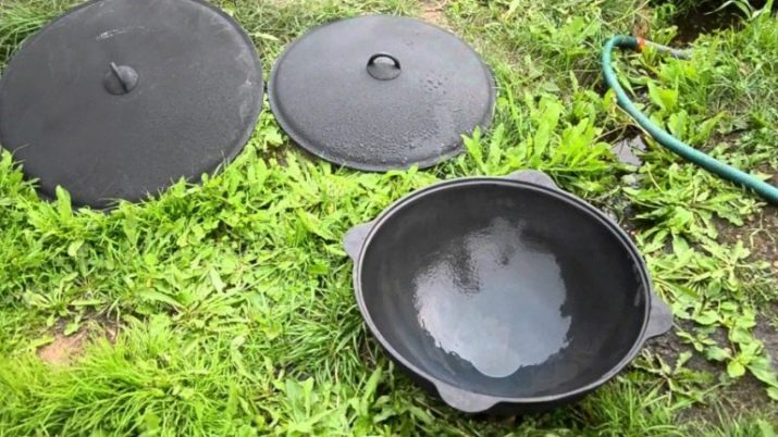 - หม้อต้มจะต้องได้รับความร้อนในเตาอบที่อุณหภูมิ 200 องศา หลังจากนี้ควรล้างจานด้วยน้ำมันพืชจากด้านนอกและด้านใน เมื่อทำการหล่อลื่นเสร็จแล้วภาชนะจะต้องถูกส่งไปยังเตาอบอีกครั้งเพื่อให้ไขมันระเหยออกหมด กิจกรรมข้างต้นควรทำซ้ำหลายครั้ง