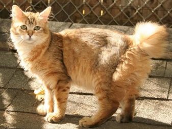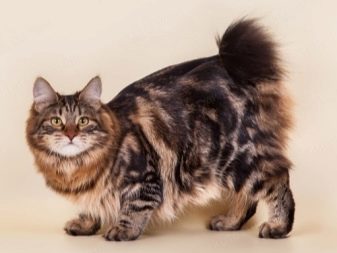 แมวตัวใหญ่ที่มีน้ำหนักมากถึง 8 กก. มีร่างกายขนาดใหญ่ยืนอยู่บนขาใหญ่ที่แข็งแรงปกคลุมด้วยขนสั้นหรือยาวครึ่ง (ไม่เกิน 2 นิ้ว) หัวของแมวมีรูปร่างคล้ายลูกแพร์ที่มีหนวดคล้ายแมวป่าชนิดหนึ่ง ดวงตาถูกตั้งค่าลึกและครึ่งปิดทำให้ลักษณะคล้ายกับสามเหลี่ยมอ่อน หูจะสวมมงกุฎด้วยพู่แบบพิเศษ รายละเอียดพิเศษคือหางสั้นเหมือนเพื่อนร่วมป่า