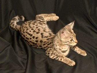 สะวันนา - ความงามแปลกใหม่ที่ได้จากการข้ามแมวบ้านและผู้อาศัยของ Serval แผ่นดินใหญ่แอฟริกา สายพันธุ์ดังกล่าวได้รับการอบรมในอเมริกาในช่วงต้นยุค 80 ของศตวรรษที่ผ่านมาเมื่อผู้เพาะพันธุ์สร้างงานของตัวเองเพื่อให้ได้สัตว์ที่มีสีป่าดั้งเดิม แต่มีลักษณะที่นุ่มนวล