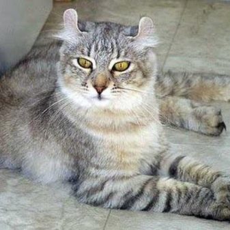 - หูยื่นออกมา (เคล็ดลับจะงอเข้าด้านใน) ในลูกแมวตัวเล็ก ๆ ขดตัวเด่นชัด