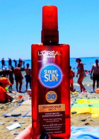 - ดราย Sublime Sun Oil จาก L'Oreal Paris ด้วยค่า SPF 30 สัญญาผิวเรียบเนียนแม้ผิวสีแทนและกระจ่างใส มีจำหน่ายในแพ็คเกจขนาด 150 มล. และเป็นสเปรย์แห้งซึ่งรวมถึง Mexoryl XL - ฟิลเตอร์ SPF ที่ละลายในน้ำมันซึ่งเป็นสิ่งประดิษฐ์ของ L'Oreal