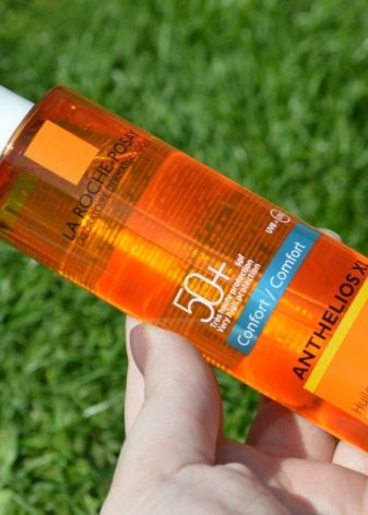 - Anthelios XL Oil พร้อม SPF50 โดย La Roche-Posay - น้ำมันที่เหมาะสำหรับสาว ๆ ที่มีผิวสีซีด ผู้ผลิตเน้นว่าองค์ประกอบนี้ยังรวมถึงน้ำร้อนตามธรรมชาติซึ่งได้รับการจดสิทธิบัตรโดยแบรนด์และมีซีลีเนียมในปริมาณสูง ซีลีเนียมเป็นสารต้านอนุมูลอิสระตามธรรมชาติมอยส์เจอร์ไรเซอร์ดังนั้นผิวหลังทาผลิตภัณฑ์จึงมีความชุ่มชื้น มันสามารถใช้สำหรับผิวมันหรือผิวที่มีสิวโดยไม่เสี่ยงต่อการเสื่อมสภาพเช่นเดียวกับ photoprotection ของผม มันมีกลิ่นหอมของดอกไม้