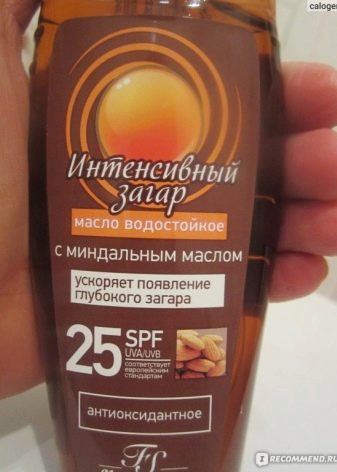 Garnier Ambre Solaire มันไม่ได้มีความแตกต่างในการปกป้องสูงดังนั้นจึงเหมาะสำหรับสาวที่มีผิวสีมะกอกที่ไม่ไหม้ อย่างไรก็ตามข้อดีสองประการคือราคาและความเร็วในการสัมผัส มันง่ายมากที่จะได้ผิวสีแทนด้วย - เชียบัตเตอร์และวิตามินอีดึงดูดแสงแดดอย่างแข็งขัน นี่เป็นตัวกระตุ้นผิวสีแทนจริง ควรทาน้ำมันทันทีเนื่องจากมันถูกดูดซึมอย่างรวดเร็ว ราคา - 400-500 รูเบิลต่อ 150 มล.
