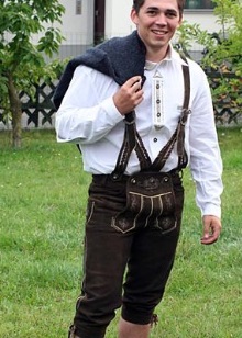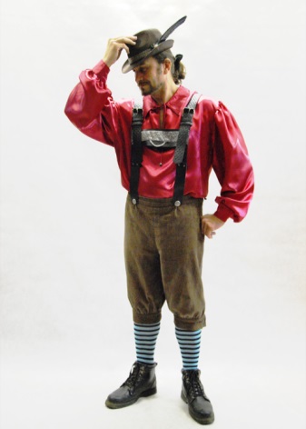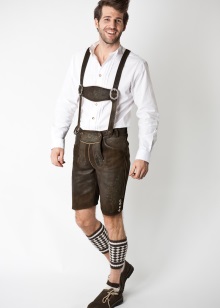เสื้อผ้าประจำชาติของบาวาเรียสำหรับผู้ชายเรียกว่า Trachten (tracht) ความแตกต่างหลักของมันคือกางเกงหนังเสริมด้วยสายแขวนหรือแสดงบนเข็มขัดกว้าง คุณลักษณะที่ขาดไม่ได้ของบาวาเรียคือหุ้มขาและรองเท้าขนาดใหญ่ ด้านบนของชุดสูทจะแสดงด้วยเสื้อเสื้อกั๊กและเสื้อโค้ตโค้ต
