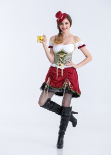 ชุดประจำชาติที่ทันสมัยของบาวาเรียสำหรับการมีเพศสัมพันธ์ที่ดูดีงามและเซ็กซี่มาก ประกอบด้วยกระโปรงมินิความยาวปุยสีแดงเสื้อหิมะสีขาวแขนเสื้อรัดตัวสวยงามและผ้ากันเปื้อนขนาดเล็ก หมวกขนนกที่ซับซ้อนจะช่วยเสริมเสน่ห์และความคิดริเริ่มให้กับธนู ในชุดนี้คุณสามารถไปงานปาร์ตี้ได้อย่างปลอดภัย
