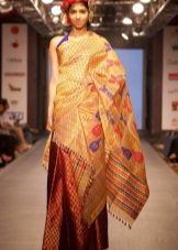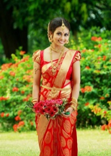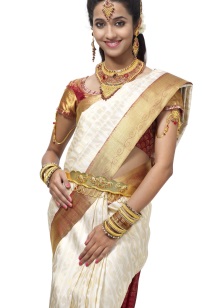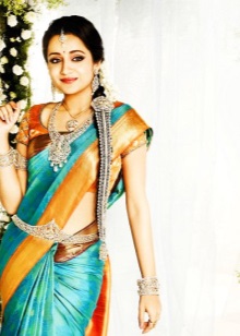 ชื่อเสียงที่โด่งดังไปทั่วโลกคือเครื่องแต่งกายแบบดั้งเดิม - ส่าหรี ส่าหรีเป็นแถบผ้าเปิดจากความยาวสี่ถึงเก้าเมตรซึ่งสามารถโยนไปทั่วร่างกายในหลากหลายรูปแบบ รูปแบบที่พบบ่อยที่สุดของการสวมส่าหรีคือเมื่อผ้าพันรอบเอวด้วยปลายด้านหนึ่งและอีกปลายหนึ่งถูกโยนข้ามไหล่เผยให้เห็นหน้าท้อง ผ้าไหมส่าหรีถือเป็นสง่าที่สุด