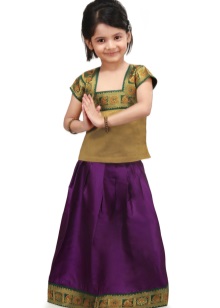 ชุดนี้สำหรับสาวอินเดียน้อย ชุดเด็กแบบดั้งเดิมทำจากผ้าไหม นี่คือเสื้อคลุมที่ตกลงมาเกือบถึงนิ้วเท้า pavada ที่นิยมมากที่สุดคือหนึ่งในประชากรของอินเดียใต้ ในช่วงพิธีสำคัญเด็ก ๆ แต่งตัวในชุดนี้