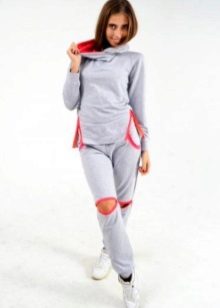 - กางเกงขายาวและแจ็คเก็ตที่มีฮู้ด - หนึ่งในรูปแบบมาตรฐานจะดึงดูดผู้ที่ให้ความสะดวกสบายมากกว่าความสวยงามภายนอก ตามกฎแล้วให้นั่งอย่างอิสระช่วยให้คุณเคลื่อนไหวและออกกำลังกายได้โดยไม่มีปัญหา ฮูดจะช่วยในช่วงเริ่มต้นของฝนในช่วงกลางของการฝึกอบรมบนท้องถนน;