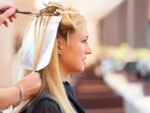 - การย้อมควรเริ่มจากด้านหลังของศีรษะ มันเป็นสิ่งจำเป็นในการเลือกเส้นเล็ก ๆ จากแต่ละโซนด้วยหวีผมบาง ๆ ย้อมสีในรูปของเห็บและไม่ถึงราก ควรทำเช่นเดียวกันกับโซนและเส้นอื่น ๆ ทั้งหมดบนหัว ศัสตราสำหรับการแยกเช่นเดียวกับในการเน้นเป็นตัวเลือก