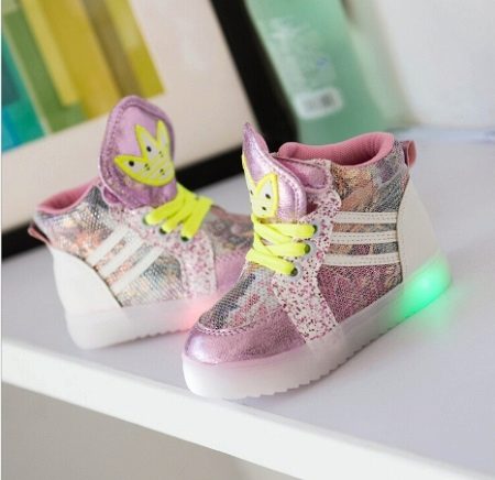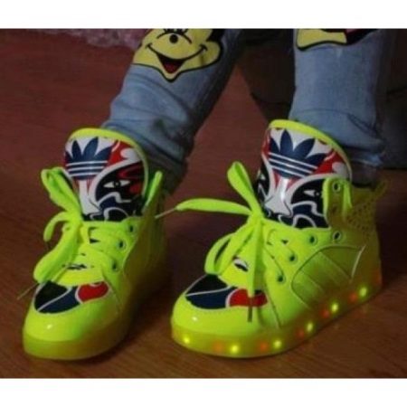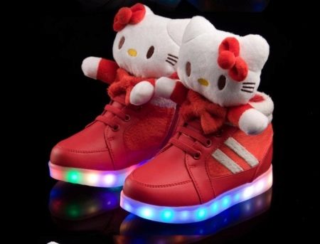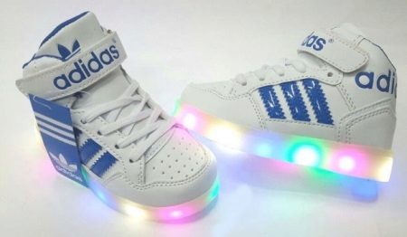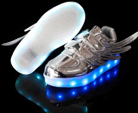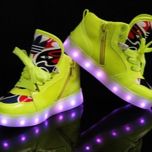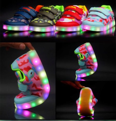 ไฟสามารถจุดด้านเดียวหรือด้านข้างของรองเท้าหรืออาจเป็นแถบเรืองแสงทึบรอบปริมณฑล พวกเขาสามารถเป็นหนึ่งหรือหลายสี ไฟสามารถสั่นไหวเฉพาะเมื่อเดินหรือประกายและประกายอย่างต่อเนื่อง ในที่สุดไม่เพียง แต่เพียงผู้เดียวสามารถส่องแสง แต่ยัง laces โลโก้หรือพื้นผิวทั้งหมดของรองเท้า ดังนั้นจึงเป็นเรื่องธรรมดาที่เด็กทุกคนที่เริ่มตั้งแต่อายุยังน้อยมากต้องการมีรองเท้าเวทมนตร์ที่น่าอัศจรรย์และมีอยู่ในตู้เสื้อผ้าของเขาอย่างน้อยหนึ่งคู่