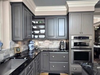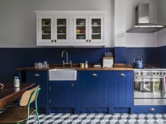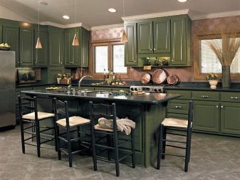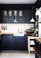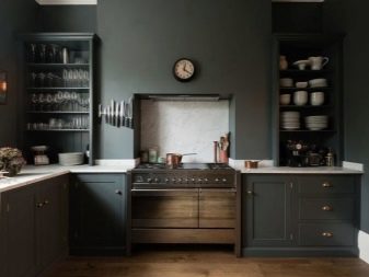 วันนี้มีทิศทางโวหารมากมายสำหรับการออกแบบห้องครัวในสีเข้ม ยกตัวอย่างเช่น หากเลือกสีน้ำเงินกลางคืนเป็นสีหลักของทะเลสีดำหรือสีปรัสเซียนเป็นสีหลักคุณสามารถสร้างการตกแต่งภายในที่น่าสนใจในรูปแบบของประเทศหรือโปรวองซ์แม้ว่าโดยทั่วไปจะใช้สีอ่อนสำหรับเส้นทางเหล่านี้ คลาสสิกยังเป็นที่นิยมมากในจานสีที่ควรจะแสดงโดยมรกตสีเข้ม, มอสสีเขียวและ viridan นอกจากนี้ห้องครัวคลาสสิกควรจะอิ่มตัวด้วยพื้นผิวด้านเนื่องจากพวกเขาดูยับยั้งมากขึ้นและการกลั่น สำหรับความเงามันสามารถนำมาใช้ในรูปแบบใด ๆ มันเหมาะอย่างยิ่งสำหรับการตกแต่งห้องครัวขนาดเล็ก