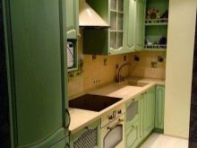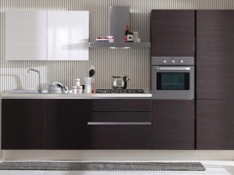 - เชิงเส้น นี่เป็นหนึ่งในตัวเลือกที่ง่ายที่สุดซึ่งเหมาะสำหรับห้องครัวขนาดเล็กที่มีสีเข้ม เฟอร์นิเจอร์ในกรณีนี้ถูกวางไว้ตามผนังด้านหนึ่ง