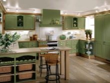 - ในครัวดังกล่าวขอแนะนำให้ใช้พื้นผิวที่แตกต่างกันเนื่องจากจะช่วยให้คุณรับรู้สีเดียวได้ดีขึ้น ส่วนใหญ่มักจะใช้การผสมผสานระหว่างพื้นผิวด้านและผิวมันโลหะและไม้ขนและสิ่งทอ